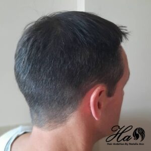 Typically a men's short back and sides cut blended into slightly longer on top. This is a grade 2 blended up to a grade 3 on the sides.